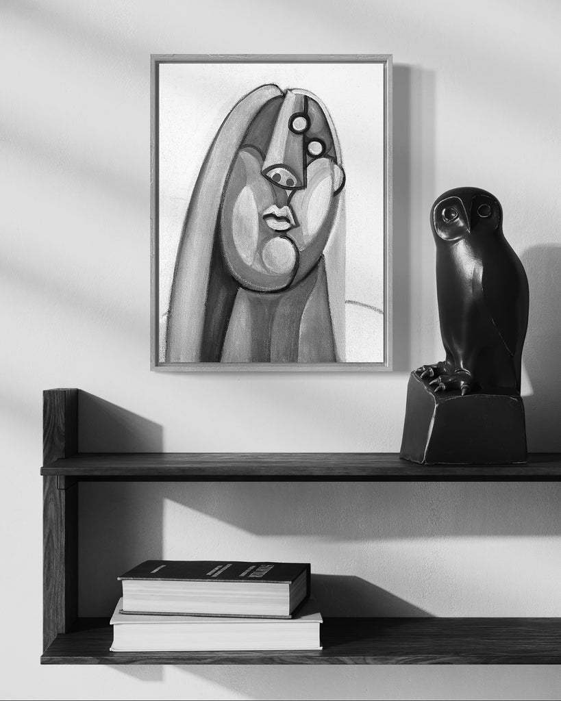 The figure is simultaneously vivid and contemplative, poised in an emotional stillness that invites the viewer to peer deeper into her world. The nuanced brushwork and deft rendering of form convey a sense of depth, as if the subject is both revealed and veiled in the same breath. The artist's careful balance of light and shadow, paired with the restrained elegance of the color scheme, imbues the portrait with an understated sophistication. There is a certain tension in the composition—a stillness paired with the suggestion of life just beneath the surface.